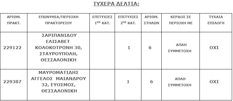 Αξίζει να σημειωθεί ότι στην δεύτερη κατηγορία (5αρια) του τυχερού παιχνιδιού του ΟΠΑΠ βρέθηκαν δύο επιτυχίες που κερδίζουν από 42.119,86 ευρώ ή κάθε μία.