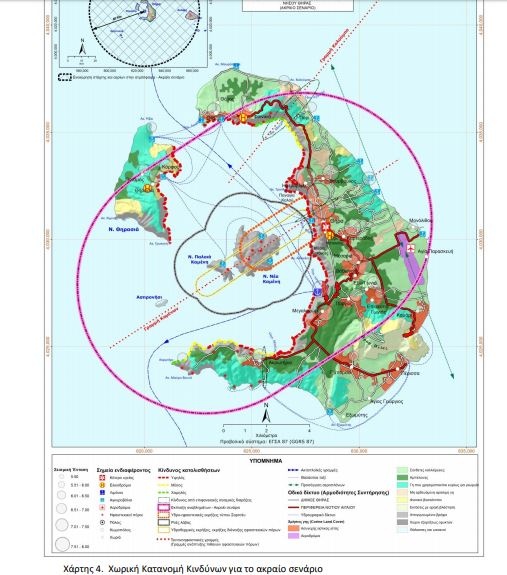 Όπως υπογραμμίζεται στις σελίδες του σχεδίου «Ταλώς», η εκδήλωση ηφαιστειακής δραστηριότητας στο σύμπλεγμα της Σαντορίνης μπορεί να προκαλέσει: