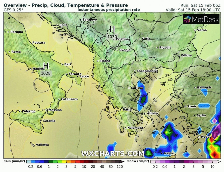 - Θερμοκρασία: Από 04 έως 16 βαθμούς Κελσίου. Στα βόρεια τοπικά 3 με 4 βαθμούς χαμηλότερη.