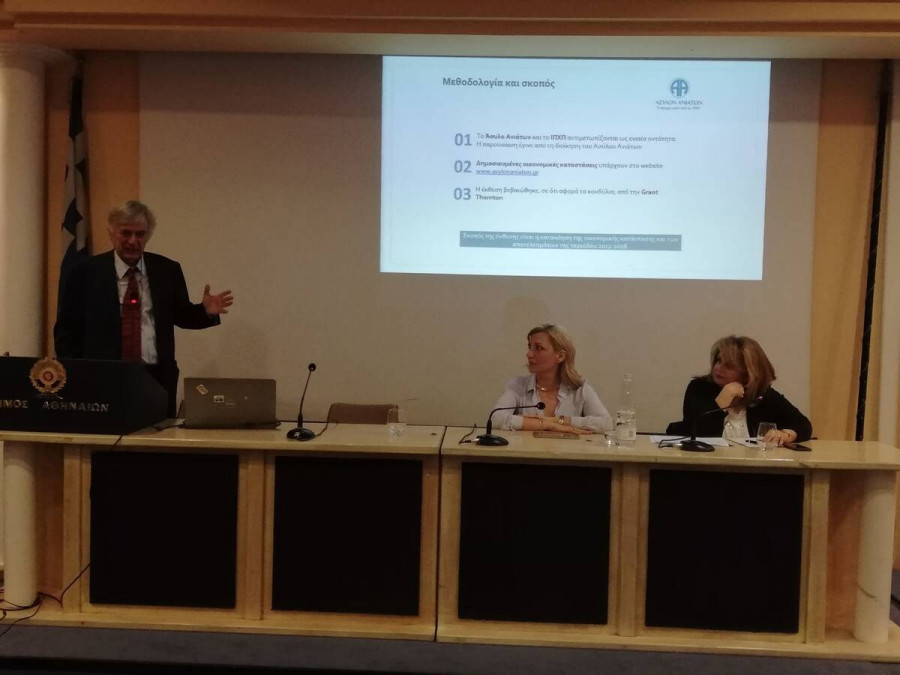 Στο πλαίσιο της Συνέντευξης Τύπου, ο κύριος Δημήτρης Ντζανάτος, μέλος της Διοίκησης του Ασύλου, πρώην Πρόεδρος του Διοικητικού Συμβουλίου της ελεγκτικής εταιρίας Grant Thornton, παρουσίασε τα βασικά οικονομικά μεγέθη του Σωματείου.
