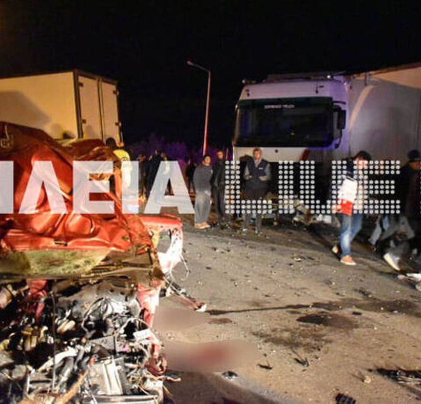 Κάτω από αδιευκρίνιστες συνθήκες δύο Ι.Χ. συγκρούστηκαν μετωπικά και πάνω τους έπεσαν δύο νταλίκες. Αποτέλεσμα της σύγκρουσης ήταν να βρουν ακαριαίο θάνατο οι οδηγοί των δύο οδηγοί των οχημάτων και να τραυματισθεί ελαφρά ο επιβάτης ενός εκ των δύο φορτηγών αναφέρει το patrisnews.com.