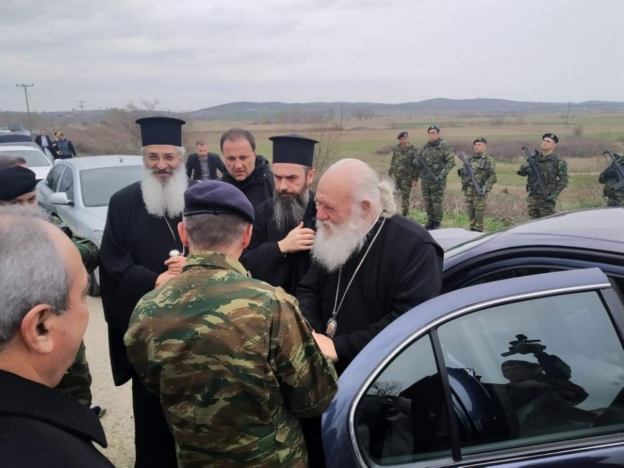 Ο κ. Ιερώνυμος, συνομιλώντας με τον διοικητή της ΧΙΙ μεραρχίας πεζικού Αλεξανδρούπολης Άγγελο Χουδελούδη, είπε: «Αισθάνομαι συγκίνηση και υπερηφάνεια. Λυπάμαι αυτές τις ψυχές των ανθρώπων που σπρώχνονται προς τα εδώ, γιατί γίνονται εργαλεία στα χέρια των άλλων. Πρέπει, εμείς που είμαστε εδώ που φτάνουν τα ευρωπαϊκά σύνορα, να είμαστε απαιτητικοί, ότι η Ευρώπη δεν μπορεί να κλείνει τα μάτια μπροστά σε τέτοια φαινόμενα. Ο λαός μας σας αγαπάει πάρα πολύ και ένοιωσε περήφανος αυτές τις ημέρες, βλέποντας έστω αυτές τις τραγικές σκηνές, οι οποίες προβάλλονται για να δημιουργούν και εντυπώσεις πολλές φορές. Αισθανθήκαμε ότι κάτι σπουδαίο γίνεται σε αυτόν τον χώρο και ο στρατός μας είναι εκείνος ο οποίος πρωτοστατεί, προχωρεί κι εμείς καμαρώνουμε και προσευχόμαστε».