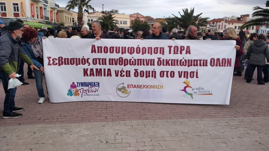 Παράλληλα, στην πλατεία Σαπφούς φορείς και κάτοικοι που είναι αλληλέγγυοι στους πρόσφυγες πραγματοποίησαν συγκέντρωση διαμαρτυρίας.