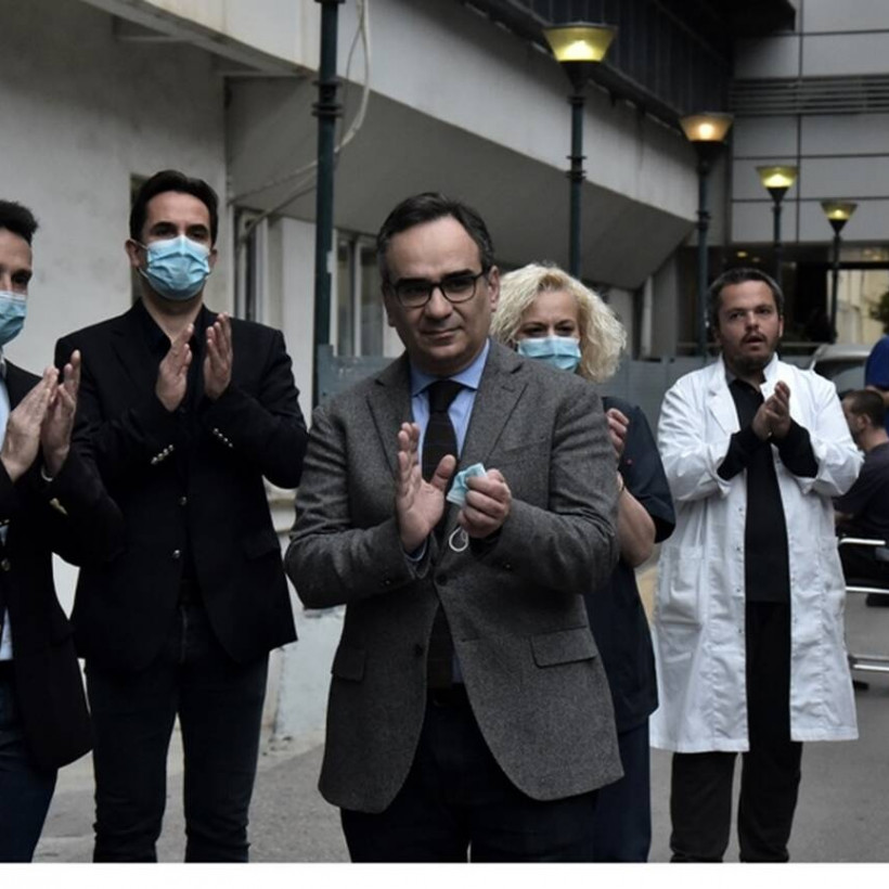 Κόσμος βγήκε στα μπαλκόνια του νοσοκομείο και σιγοτραγούδησε τις μελωδίες, ενώ στον προαύλιο χώρο του νοσοκομείο βρέθηκε και ο υφυπουργός Υγείας Βασίλης Κοντοζαμάνης.