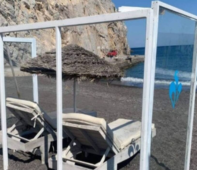 Κορονοϊός: Στη Σαντορίνη οι πρώτες ξαπλώστρες με πλέξιγκλας (pics)