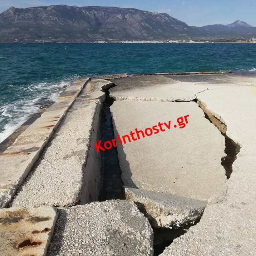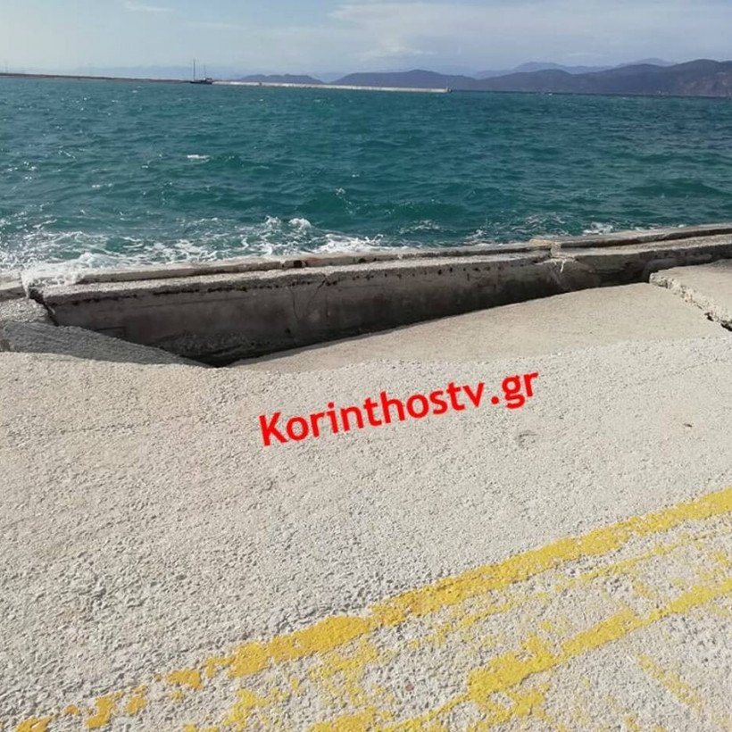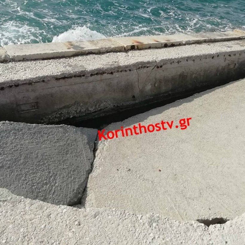 Το έδαφος κάτω από την τσιμεντένια παραλία του Αγίου Νικολάου στην Κόρινθο διαβρώθηκε από τα κύματα. Αποτέλεσμα αυτό να υποχωρήσει και ως συνέπεια να προκληθεί μεγάλη καθίζηση και το έδαφος να έχει ανοίξει στα δύο.