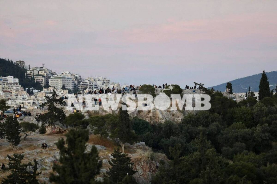 Πολίτες συγκεντρώθηκαν από νωρίς και στην περιοχή της Ακρόπολης, και αφού έκαναν την βόλτα τους, έμειναν στον βράχο για να δουν την πανσέληνο.