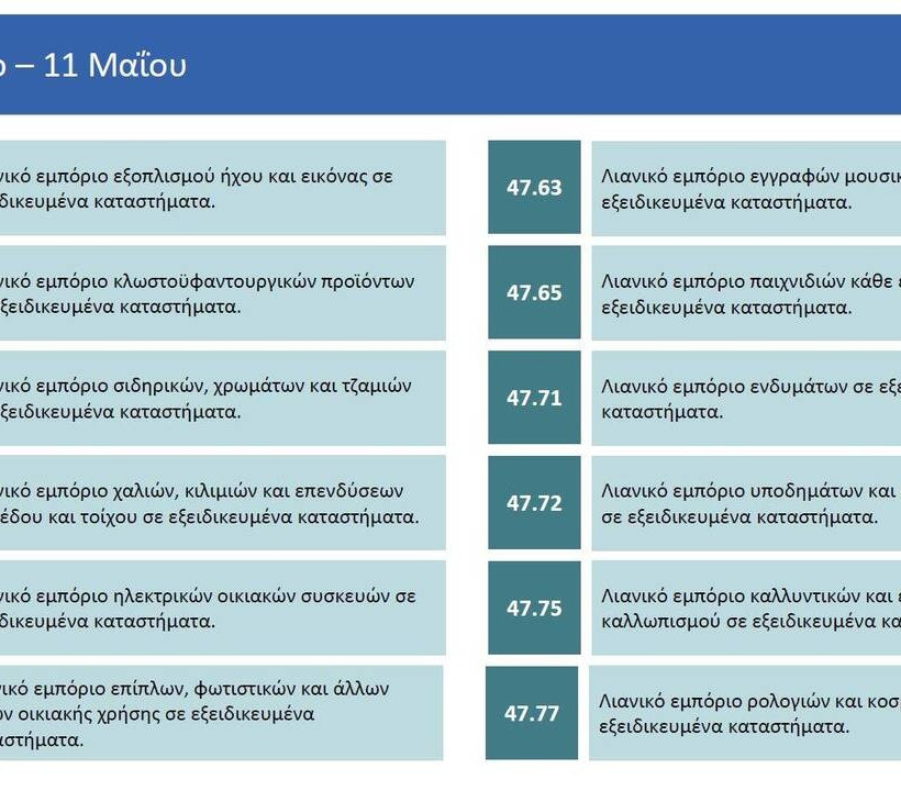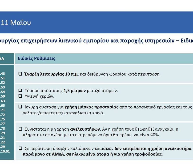 Δείτε το pdf με τα καταστήματα που ανοίγουν από Δευτέρα (11/05):