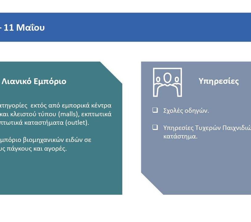 Δείτε το pdf με τα καταστήματα που ανοίγουν από Δευτέρα (11/05):