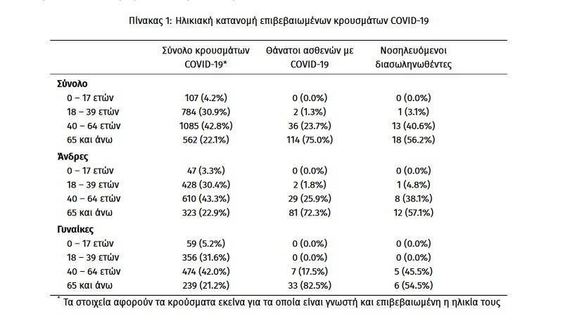 Η ηλικιακή κατανομή των (α) συνολικών κρουσμάτων, (β) των περιστατικών που κατέληξαν σε θάνατο και (γ) των ασθενών που νοσηλεύονται διασωληνωμένοι, είναι η ακόλουθη: