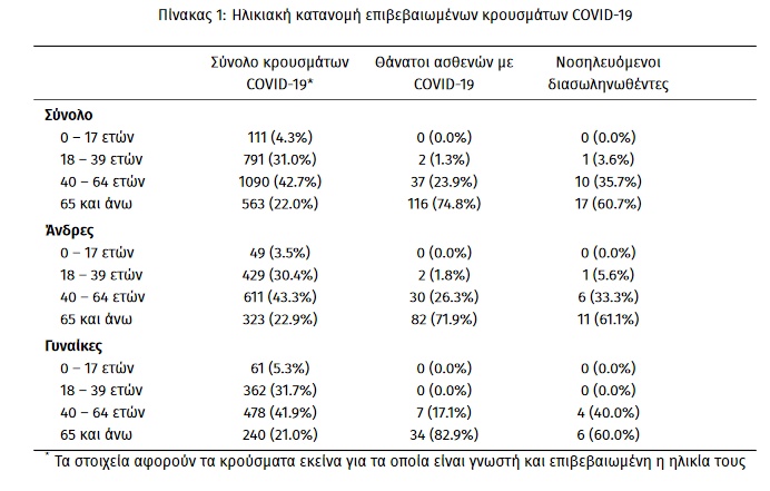 Η ηλικιακή κατανομή των (α) συνολικών κρουσμάτων, (β) των περιστατικών που κατέληξαν σε θάνατο και (γ) των ασθενών που νοσηλεύονται διασωληνωμένοι, είναι η ακόλουθη: