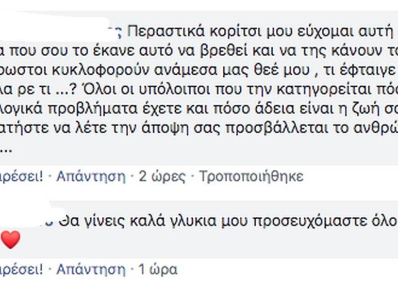 Οι περισσότεροι της εύχονται γρήγορη και καλή ανάρρωση, ενώ άλλοι καταδικάζουν την πράξη και ζητούν την ανεύρεση και την τιμωρία της γυναίκας, που σκόρπισε τον φόβο και τον πόνο στη ζωή της 34χρονης.