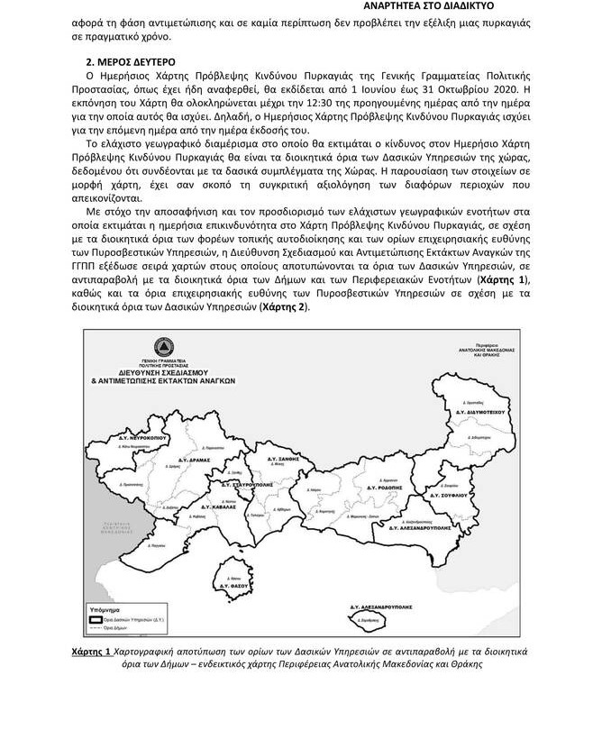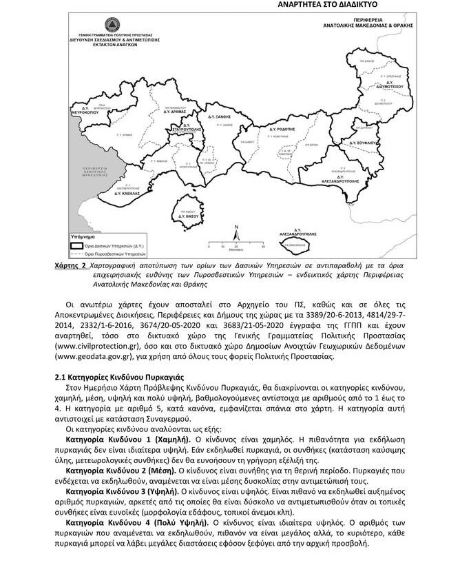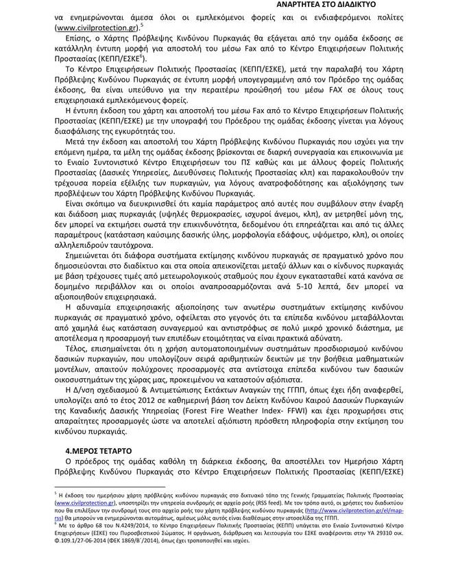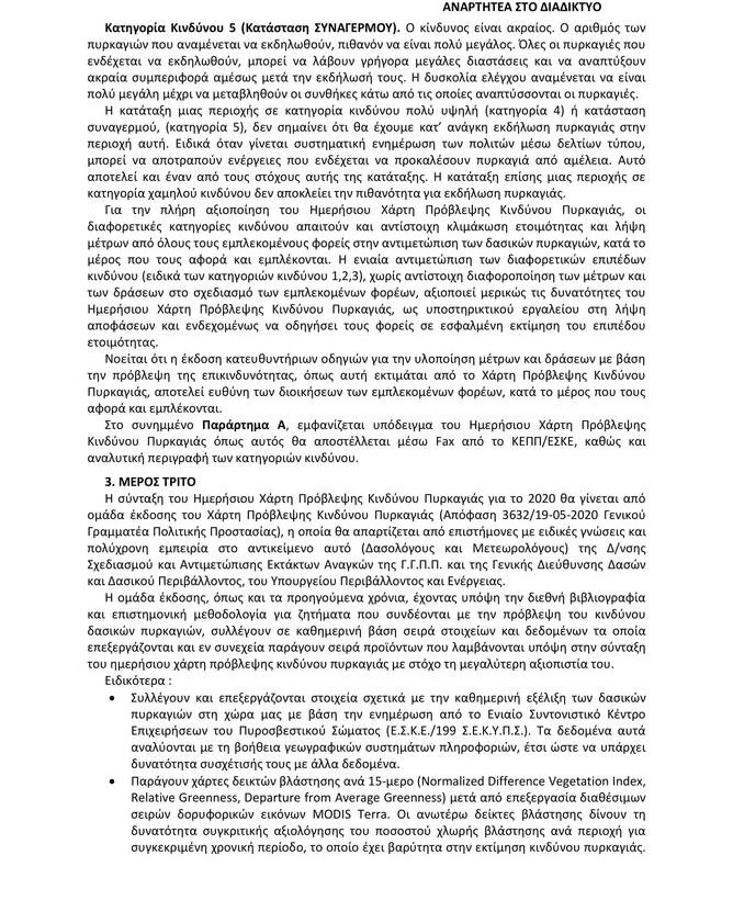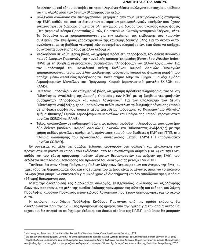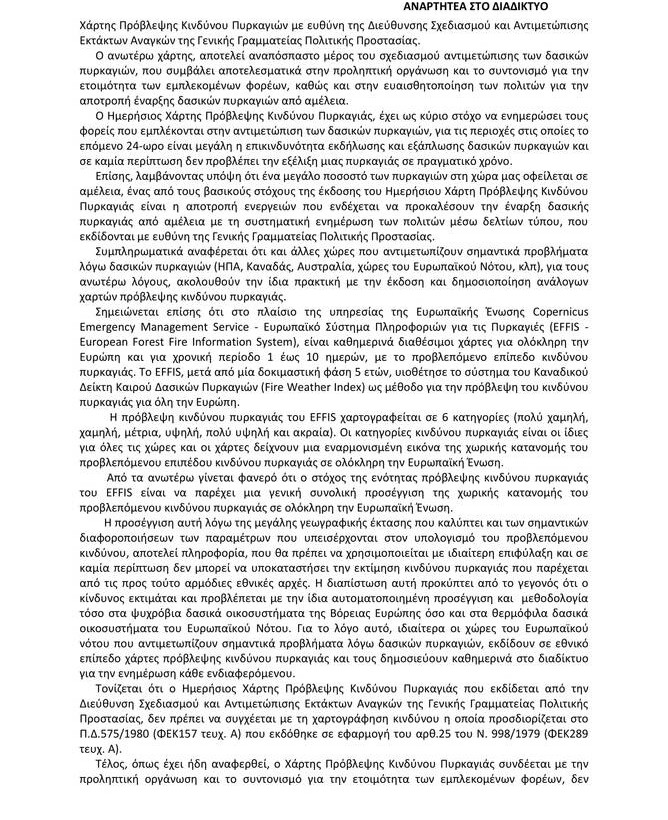 Σημειώνεται ότι ο Ημερήσιος Χάρτης Πρόβλεψης Κινδύνου Πυρκαγιάς αφορά την επόμενη ημέρα από αυτή που εκπονείται και εκδίδεται.