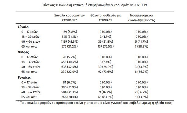 Η ηλικιακή κατανομή των (α) συνολικών κρουσμάτων, (β) των περιστατικών που κατέληξαν σε θάνατο και (γ) των ασθενών που νοσηλεύονται διασωληνωμένοι, είναι η ακόλουθη: