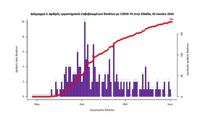 Τα νέα εργαστηριακά επιβεβαιωμένα κρούσματα της νόσου την Τρίτη (02/06) είναι 19, εκ των οποίων 12 σε ταξιδιώτες που αφίχθηκαν με πτήση από το εξωτερικό. Ο συνολικός αριθμός των κρουσμάτων ανέρχεται σε 2.937 (ημερήσια μεταβολή +0.7%), εκ των οποίων 55.3% άνδρες.
