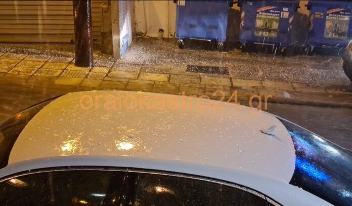 Στο Ωραιόκαστρο, έπεσε χαλάζι, οι δρόμοι μετατράπηκαν σε ποτάμια ενώ η κίνηση στους δρόμους της περιοχής διεξάγεται με δυσκολία.