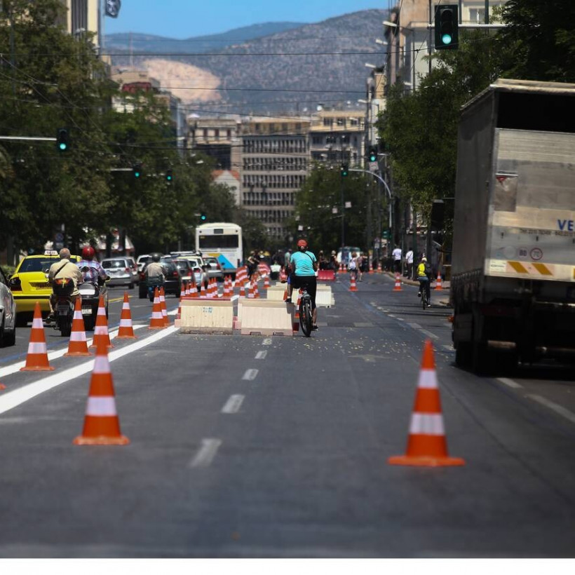 Μια διαδρομή που φτιάχτηκε από τον Δήμο Αθηναίων αξιοποιώντας το γεγονός ότι το τραμ έχει διακόψει στο σημείο αυτό τα δρομολόγιά του, για να διευκολύνει τους ποδηλάτες να φτάσουν ως τον ποδηλατόδρομο που δημιουργείται στην Πανεπιστημίου.
