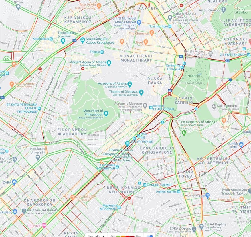 Δείτε τον χάρτη με την εικόνα της κίνησης στις 9:10:
