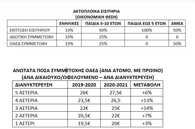 - Μείωση ιδιωτικής συμμετοχής σε όλα τα ξενοδοχεία