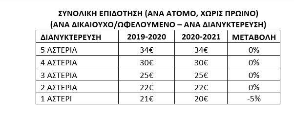 - Αύξηση επιδότησης σε ξενοδοχεία 2, 3, 4 και 5 αστέρων με πρωινό