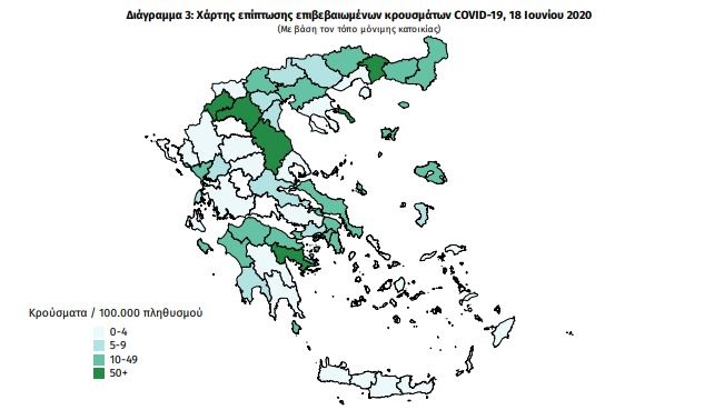 Από το σύνολο των 3227 κρουσμάτων, 703 (21.8%) θεωρούνται σχετιζόμενα με ταξίδι από το εξωτερικό, 1804 (55.9%) είναι σχετιζόμενα με ήδη γνωστό κρούσμα και τα υπόλοιπα δεν σχετίζονται ούτε με ταξίδι ούτε με άλλο γνωστό κρούσμα ή είναι ακόμα υπό διερεύνηση.