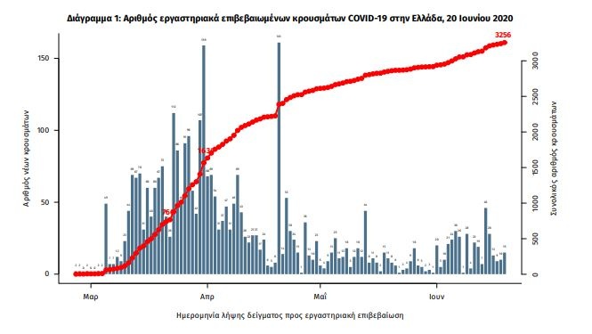 Κορονοϊός: 19 νέα κρούσματα του κορονοϊού ανακοίνωσε το Σάββατο (20/06) ο ΕΟΔΥ - Ο συνολικός αριθμός των κρουσμάτων στην Ελλάδα ανέρχεται σε 3.256
