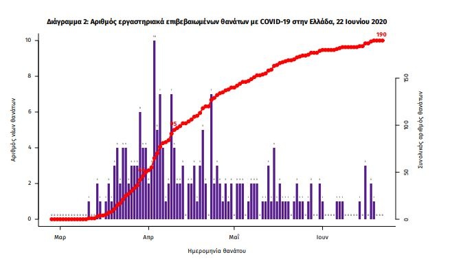 Δεν έχει καταγραφεί κανένας νέος θάνατος ασθενούς με COVID-19, ενώ από την έναρξη της επιδημίας έχουν καταγραφεί συνολικά 190 θάνατοι. Η μέση ηλικία των ασθενών που απεβίωσαν είναι 76 έτη.