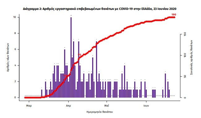 Δεν έχει καταγραφεί κανένας νέος θάνατος ασθενούς με COVID-19, ενώ από την έναρξη της επιδημίας έχουν καταγραφεί συνολικά 190 θάνατοι. Η μέση ηλικία των ασθενών που απεβίωσαν είναι 76 έτη. Ο αριθμός των ασθενών που νοσηλεύονται διασωληνωμένοι είναι 8 (87.5% άνδρες).