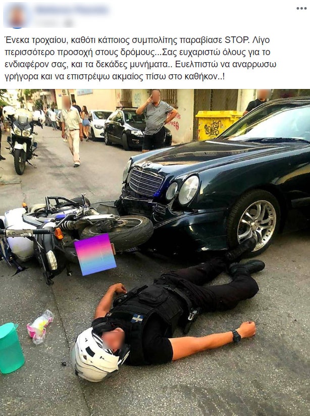 Παράλληλα ο Λαρισαίος αστυνομικός έκανε έκκληση για περισσότερη προσοχή στους δρόμους.