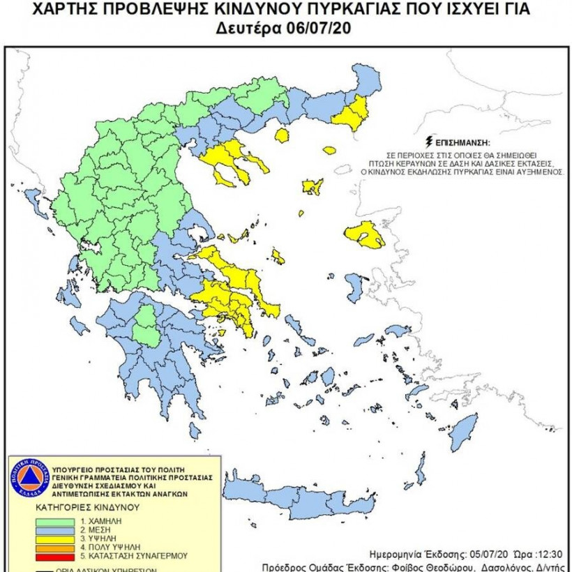Δείτε στο χάρτη τις περιοχές που αντιμετωπίζουν κίνδυνο σήμερα Δευτέρα, 6 Ιουλίου
