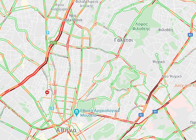 Προβλήματα στην κυκλοφορία εντοίζονται επίσης και στη Μεσογείων, την Αλεξάνδρας, αλλά και τον Κηφισό από το ύφος της Λεωφόρου Αθηνών μέχρι το ύψος της Φιλαδέλφειας και στα δύο ρεύματα.