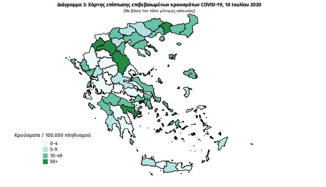 Κορονοϊός: 60 νέα κρούσματα του κορονοϊού ανακοίνωσε την Παρασκευή (10/07) ο ΕΟΔΥ - Ο συνολικός αριθμός των κρουσμάτων στην Ελλάδα ανέρχεται σε 3.732