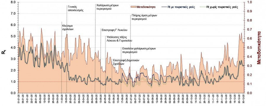 Μεταβολές λόγω εισόδου τουριστών. Με βάση τα μέχρι τώρα αποτελέσματα, φαίνεται ότι τις τελευταίες ημέρες υπάρχει μια αυξητική τάση νέων κρουσμάτων, που κυρίως οφείλονται σε φορείς προερχόμενους από το εξωτερικό.