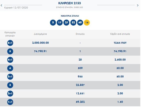 Συγκεκριμένα, ένα δελτίο κέρδισε 74.790,91 ευρώ. Δείτε πού κατατάθηκε το τυχερό δελτίο: