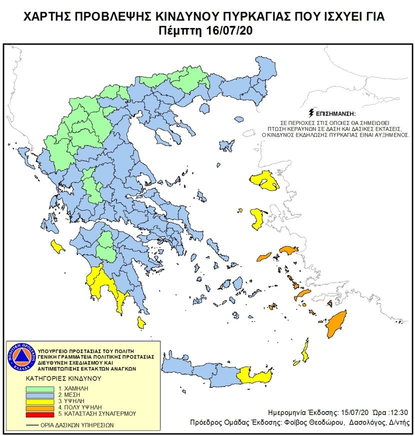 Πολύ υψηλός κίνδυνος πυρκαγιάς προβλέπεται αύριο, Πέμπτη 16 Ιουλίου, σε ορισμένες περιοχές της Ελλάδας.