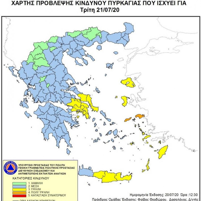 Δείτε στο χάρτη τις περιοχές που αντιμετωπίζουν κίνδυνο σήμερα Τρίτη, 21 Ιουλίου