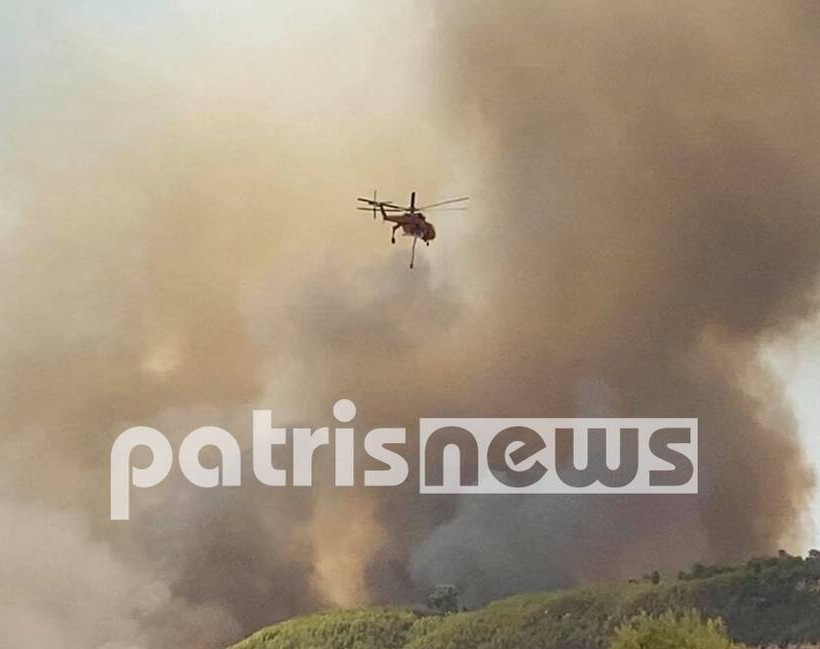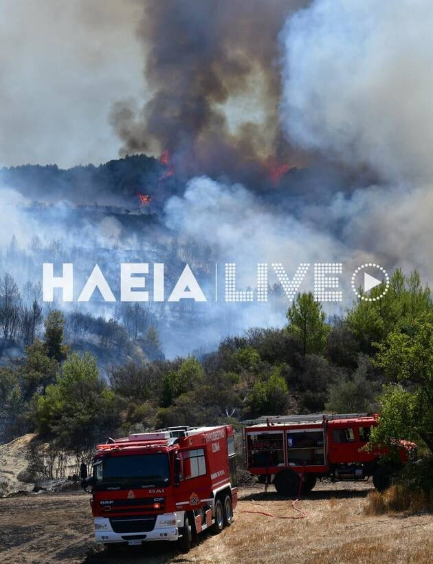 Αυτή την ώρα, η πυρκαγιά μαίνεται ανεξέλεγκτη και έχει φτάσει να απειλεί χωριά της Αρχαίας Ολυμπίας.