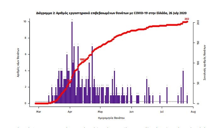 Οι νέοι θάνατοι ασθενών με COVID-19 είναι 1, ενώ από την έναρξη της επιδημίας έχουν καταγραφεί συνολικά 202 θάνατοι.