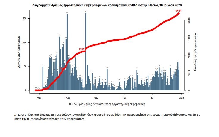Κορονοϊός: «Καμπανάκι» χτυπάει στις Αρχές της χώρας, καθώς για ακόμα μία μέρα καταγράφηκαν πάνω από 50 κρούσματα στην Ελλάδα - Συγκεκριμένα, σήμερα Πέμπτη (30/07) ο ΕΟΔΥ ανακοίνωσε 65 νέα κρούσματα του νέου ιού στην Ελλάδα, εκ των οποίων τα 17 εντοπίστηκαν κατόπιν ελέγχων στις πύλες εισόδου της χώρας.
