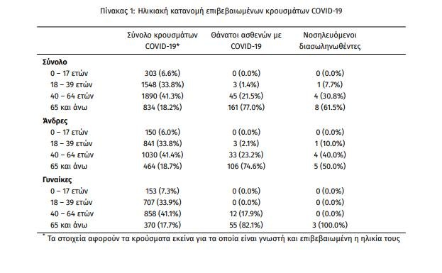 Τέλος, δεν έχει καταγραφεί κανένας νέος θάνατος ενώ έχουμε 210 θανάτους συνολικά στη χώρα. Οι 67 (32.1%) γυναίκες και οι υπόλοιποι άνδρες. Η διάμεση ηλικία των θανόντων συμπολιτών μας ήταν τα 76 έτη και το 95.7% είχε κάποιο υποκείμενο νόσημα ή/και ηλικία 70 ετών και άνω.