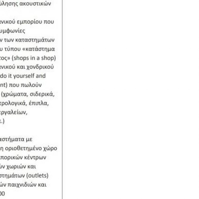 - Λιανικό εμπόριο εξοπλισμού ήχου και εικόνας σε εξειδικευμένα καταστήματα -Λιανικό εμπόριο κλωστοϋφαντουργικών προϊόντων σε εξειδικευμένα καταστήματα