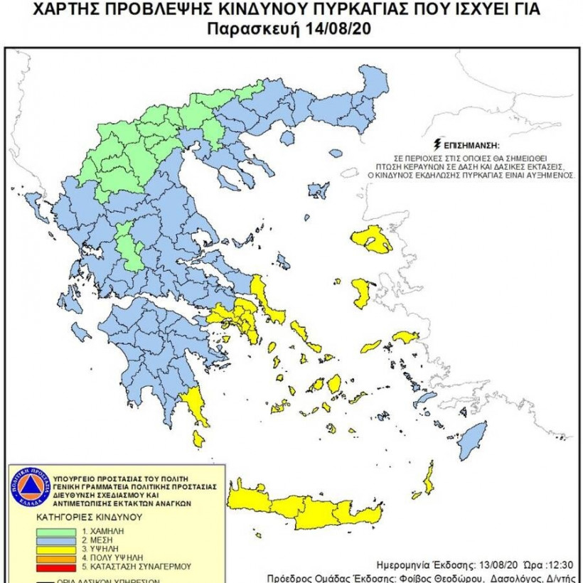 Δείτε στο χάρτη, τις περιοχές που αντιμετωπίζουν κίνδυνο σήμερα Παρασκευή, 14 Αυγούστου