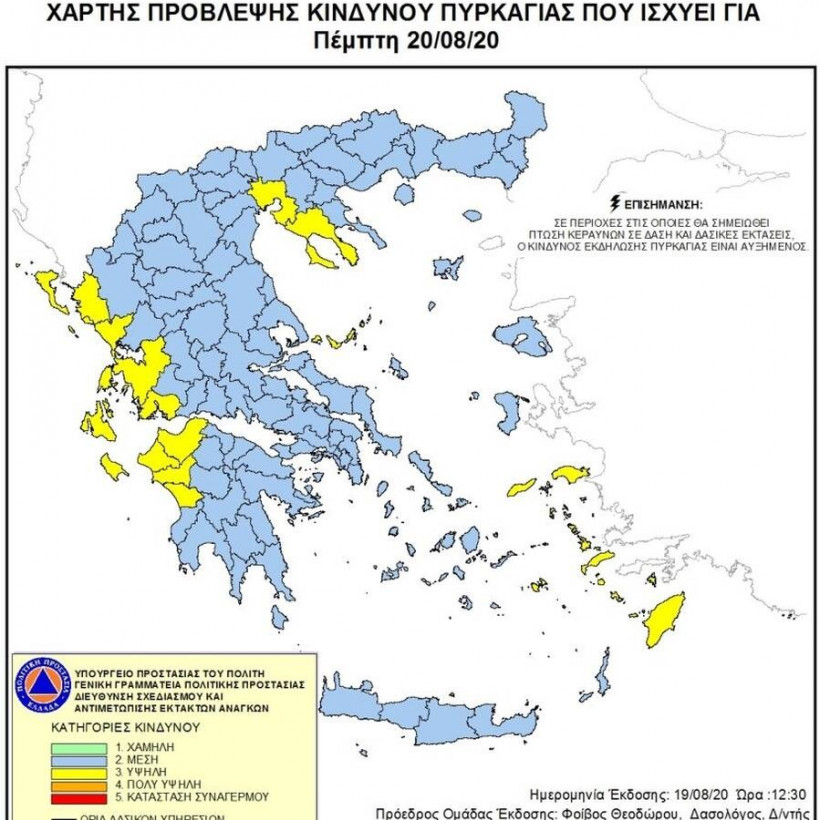 Δείτε στο χάρτη, τις περιοχές που αντιμετωπίζουν κίνδυνο σήμερα Πέμπτη, 20 Αυγούστου