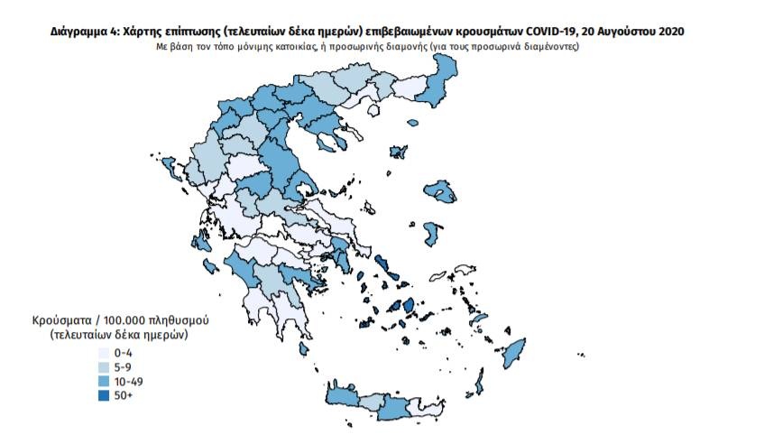 Τα στοιχεία που παρουσιάζονται αφορούν περιστατικά από την επιδημιολογική επιτήρηση της νόσου από το νέο κορoνοϊό (COVID19), με βάση τα δεδομένα που έχουν δηλωθεί στον ΕΟΔΥ και καταγραφεί μέχρι τις 20 Αυγούστου 2020 (ώρα 15:00).