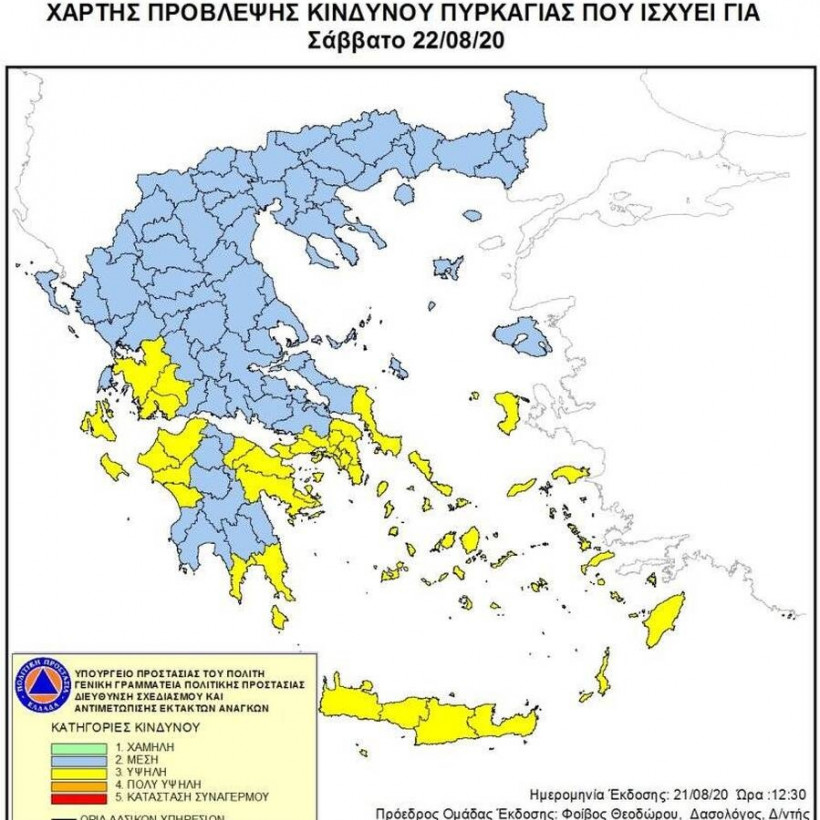 Δείτε στο χάρτη, τις περιοχές που αντιμετωπίζουν κίνδυνο σήμερα Σάββατο, 22 Αυγούστου