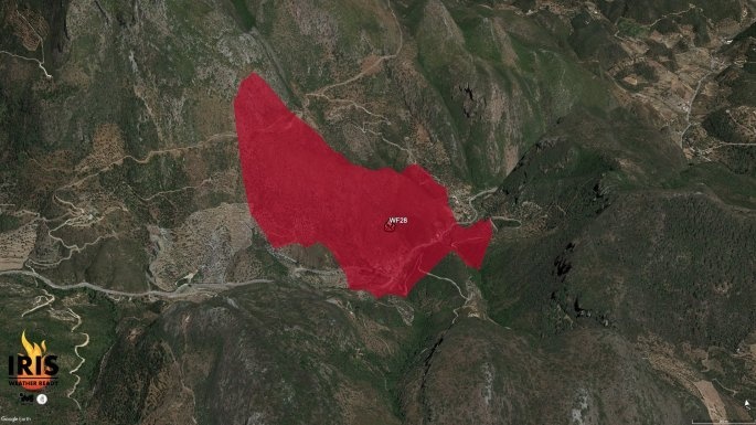 Στην παρακάτω εικόνα παρουσιάζεται η πρόγνωση εξάπλωσης του IRIS κάποιες ώρες μετά την έναρξή της. Τα ακριβή στοιχεία είναι στη διάθεση του ΕΣΚΕ και θα δοθούν στη δημοσιότητα αργότερα.