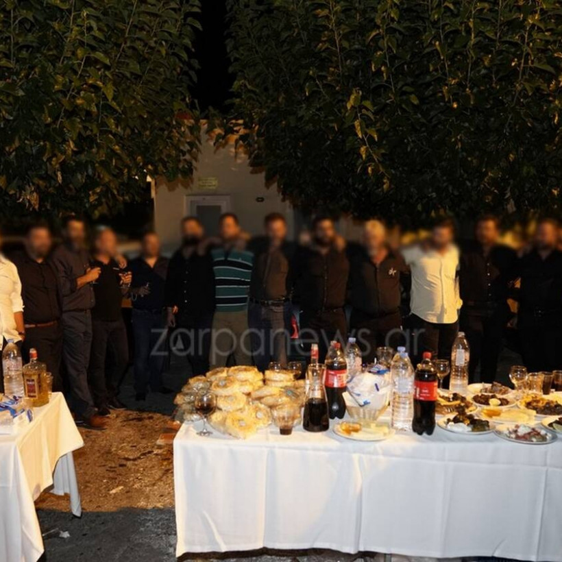 οι πρώτοι καλεσμένοι που έφταναν στο σημείο που είχε οριστεί για το γλέντι, συνάντησαν έναν μεγάλο αστυνομικό κλοιό και διμοιρία των ΜΑΤ να βρίσκεται στο σημείο, ώστε να διασφαλιστεί ότι δε θα τελεστεί καμία παρασπονδία για τα μέτρα Πηγή: zarpanews.gr
