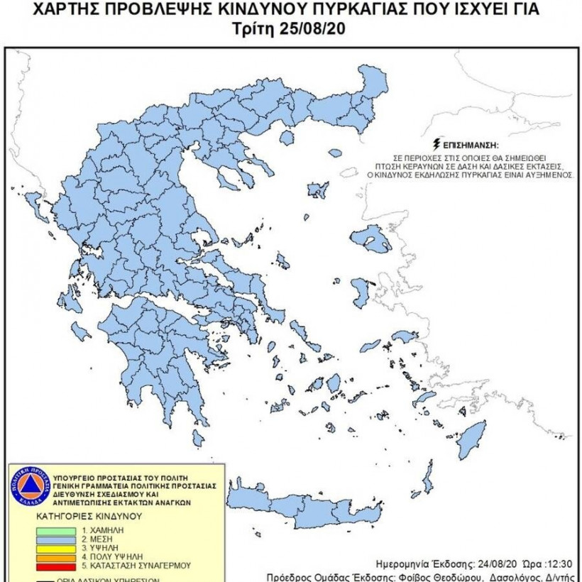 Δείτε στο χάρτη, τις περιοχές που αντιμετωπίζουν κίνδυνο σήμερα Τρίτη, 25 Αυγούστου