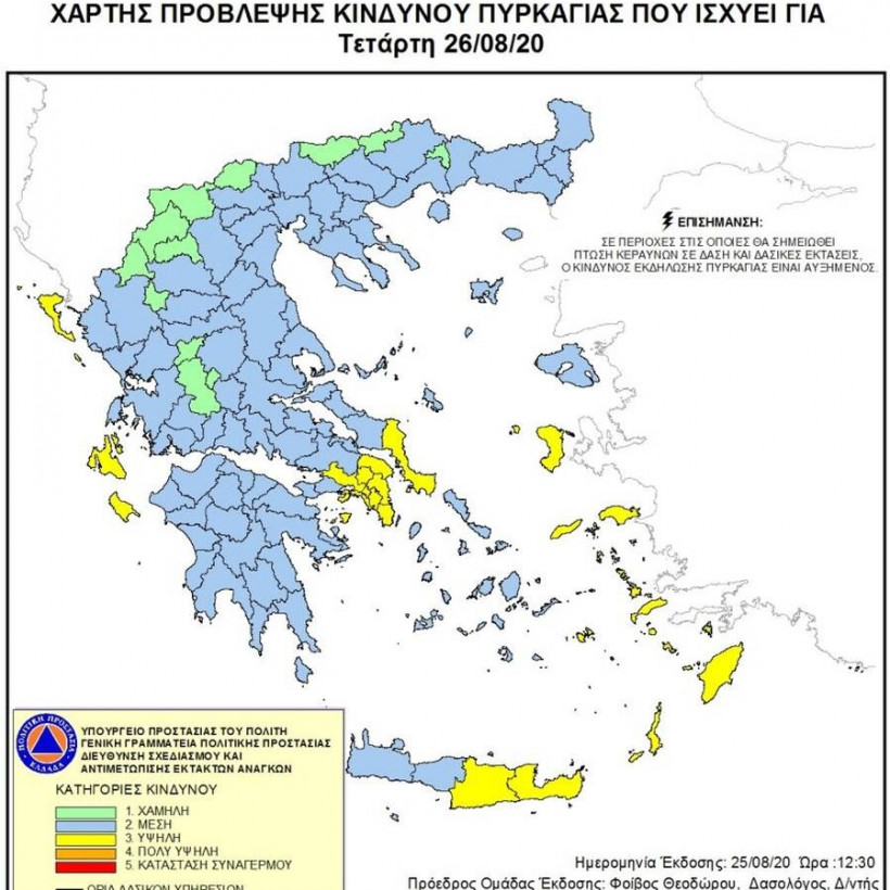 Δείτε στο χάρτη, τις περιοχές που αντιμετωπίζουν κίνδυνο σήμερα Τετάρτη, 26 Αυγούστου