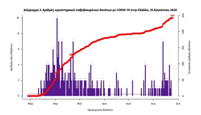 Τα στοιχεία που παρουσιάζονται αφορούν περιστατικά από την επιδημιολογική επιτήρηση της νόσου από το νέο κορoνοϊό (COVID19), με βάση τα δεδομένα που έχουν δηλωθεί στον ΕΟΔΥ και καταγραφεί μέχρι τις 25 Αυγούστου 2020 (ώρα 15:00).